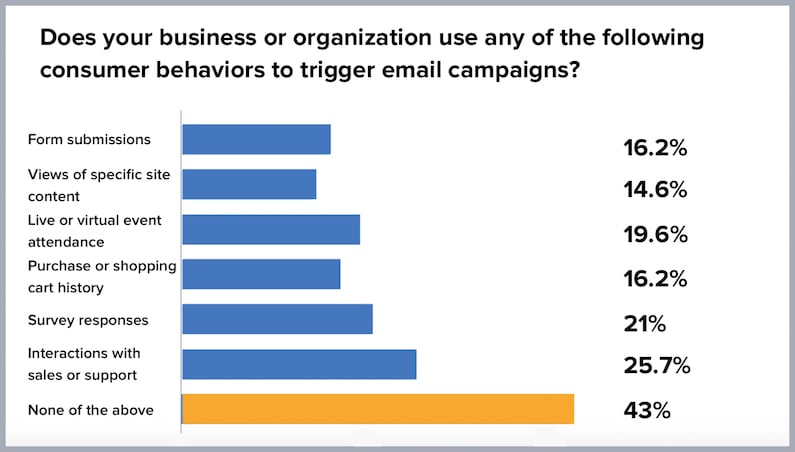 Remember, our survey found that 43% of marketers aren’t sending behavioral emails at all.