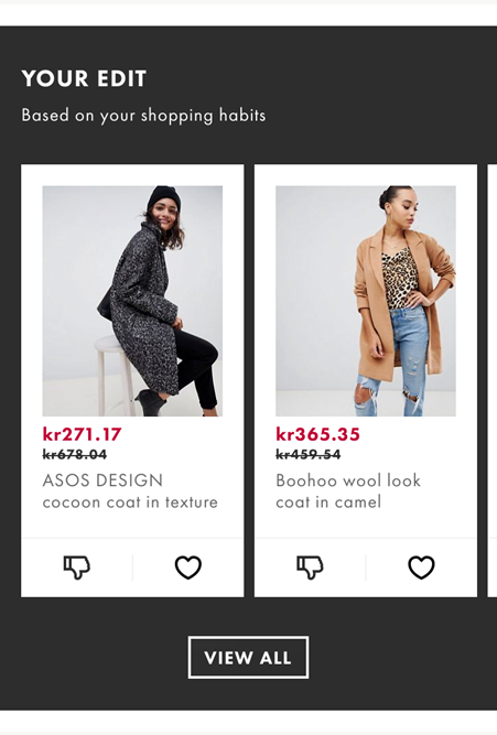 La app ASOS va un paso más allá con las recomendaciones personalizadas.