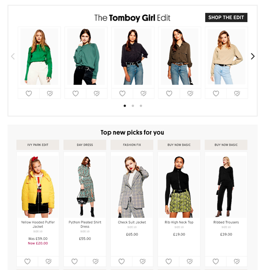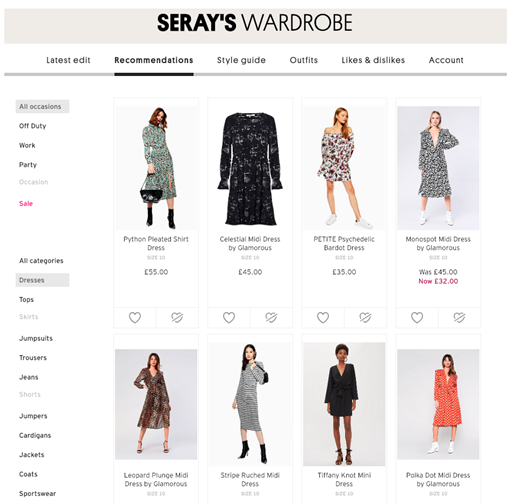 (En caso de que te preguntes, Topshop usa una herramienta de terceros, llamada Dressipi, para el guardarropa).