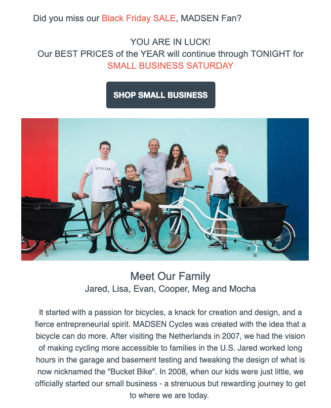 Outra empresa que aproveita o período pós-Black Friday é a Madsen Cycles: