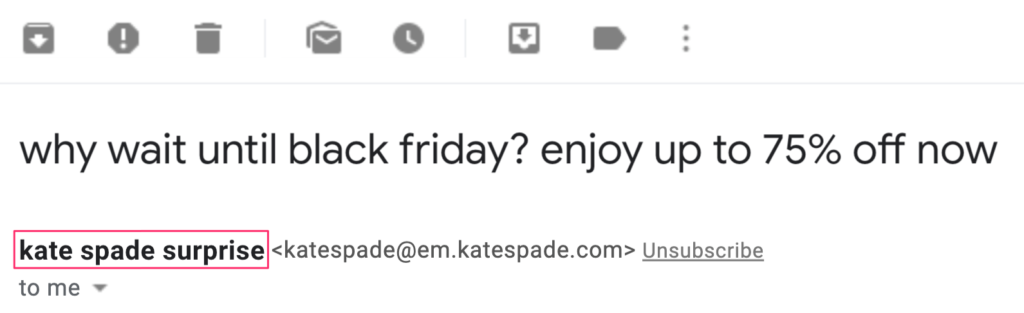 Enviada pelo remetente escrito “surpresa kate spade”, a empresa anuncia suas ofertas antecipadas da Black Friday, provocando sua impaciência.