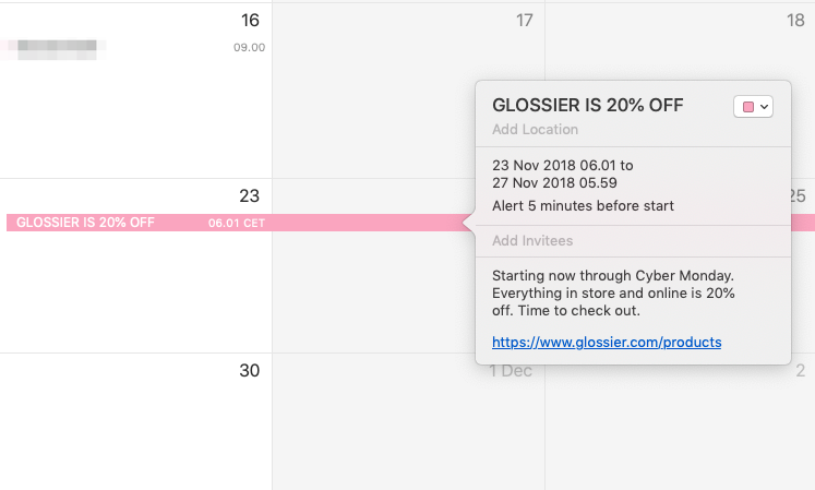 Veja como a empresa Glossier faz isso em seus e-mails da Black Friday: