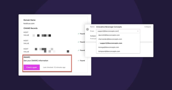 View your DMARC policy status for each domain in-app in your domain settings. Additionally, we added another layer of domain status checks to look at and notify around DMARC status.